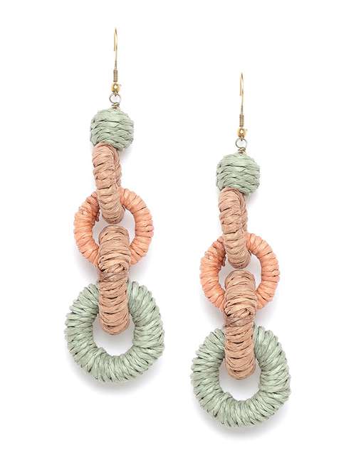- » olive green & peach-coloured colourblocked circular drop earrings