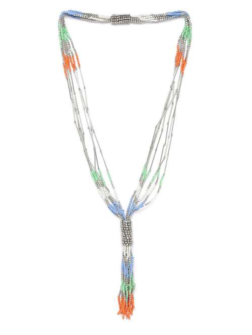 Multicoloured silver-plated beaded tasselled necklace