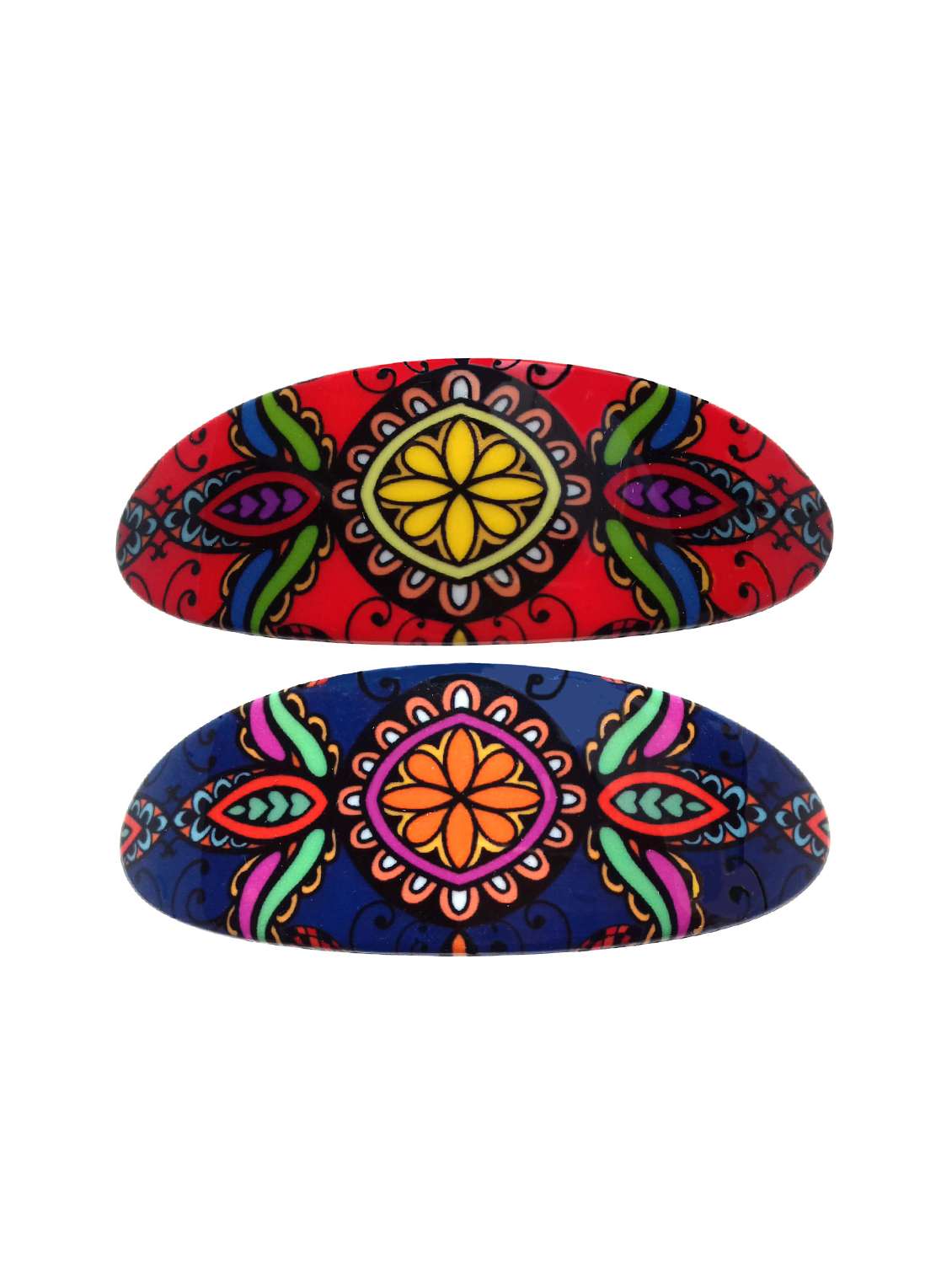 - » combo of 2 multicolour shiny floral print hair ponytail barrette clutcher alligator buckle with banana clip for women/girl