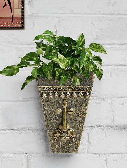 fiber golden planter ideal for home décor,garden, office - metalic golden v shape face planter