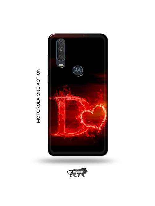 tweakymod designer printed hard case | fire heart letter d back cover compatible with motorola one action