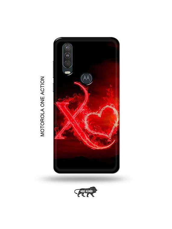tweakymod designer printed hard case | fire heart letter x back cover compatible with motorola one action