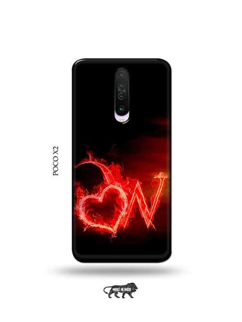 tweakymod designer printed hard case | fire heart letter w back cover compatible with poco x2