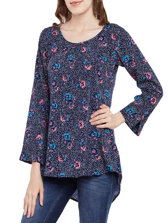 pleat detail floral high low tunic