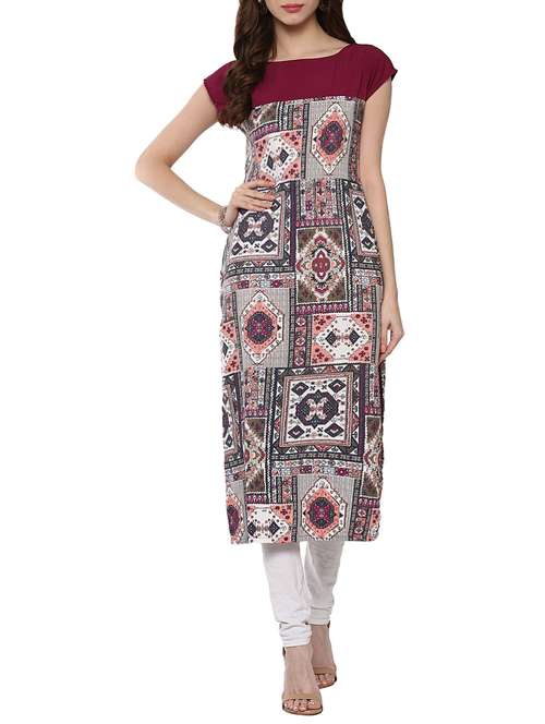 magenta poly crepe printed straight kurta - 13132872 - Very Small Image - 1