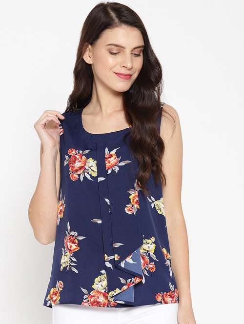 - Opt for this top made up of poly crepe material and get it in a varied neck design.
