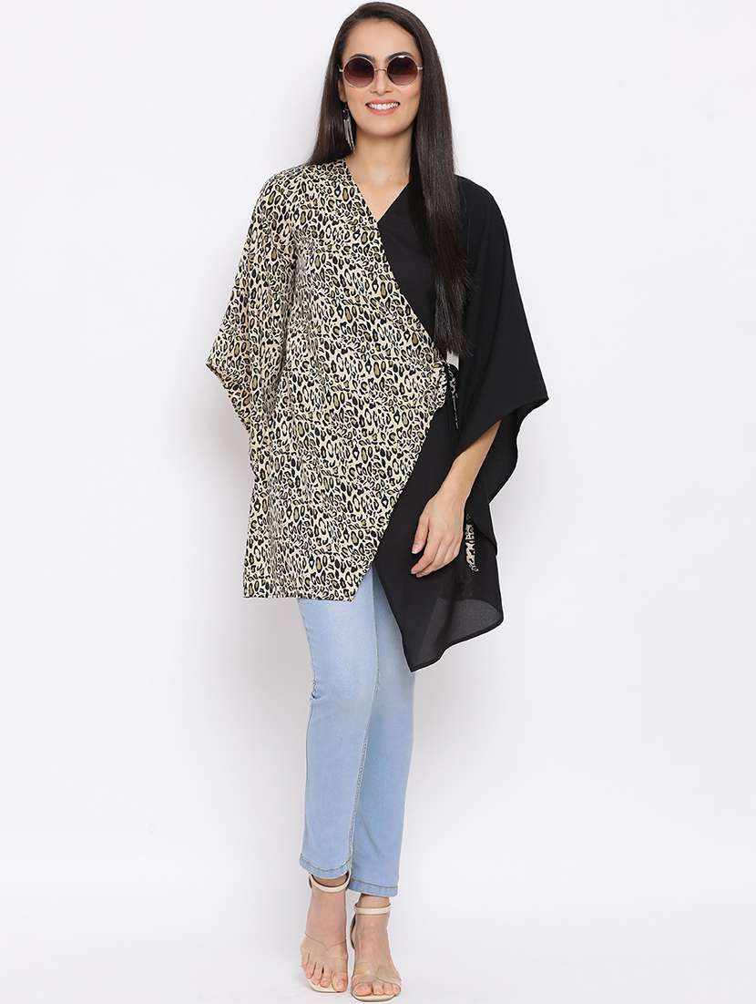 - » women animal print kimono sleeve long wrap top