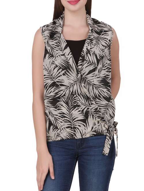 - » black printed wrap top