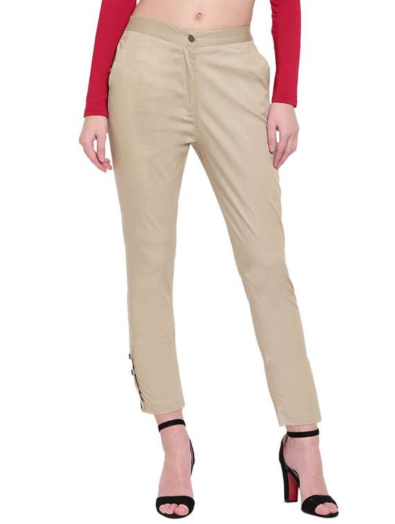 women solid flat front cigarette pants