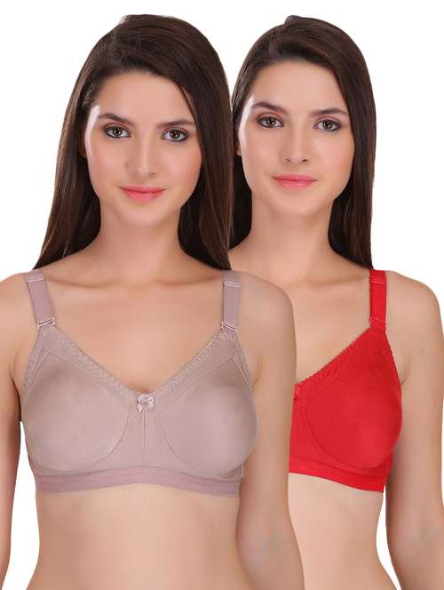 Featherline Perfect Fitted Poly Cotton Non-Padded Seamless Full Coverage Women's Minimizer Bra. The M-frame, full-support bra is crafted with poly cotton fabric. Its straps are centrally aligned ensuring a comfortable feel. The bra is non-wired and prevents any discomfort. The bra provides full coverage and excellent conical shape with its seamless cups. The reinforced seam, broad side wings and U-shaped back offer additional support. The broad back band and brushed elastic give a smooth and soft feel. Its underbust is designed with imported elastic. The high centre gore and a cute bow in between add to its style. Detachable Straps to style the bra in multiple ways