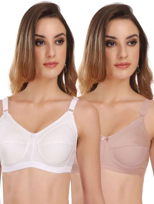 Featherline Poly Cotton Non-Padded Full Coverage Women's Minimizer Bra. The M-frame, full-support bra is crafted with poly cotton fabric. Its straps are centrally aligned ensuring a comfortable feel. The bra is non-wired and prevents any discomfort. The bra provides full coverage and excellent conical shape with its seamed cups. The reinforced seam, broad side wings and U-shaped back offer additional support. The broad back band and brushed elastic give a smooth and soft feel. Its underbust is designed with imported elastic. The high centre gore and a cute bow in between add to its style.