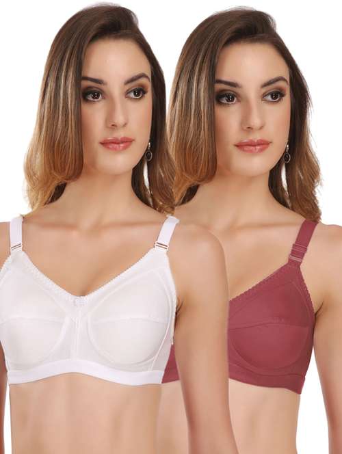 Featherline Poly Cotton Non-Padded Full Coverage Women's Minimizer Bra. The M-frame, full-support bra is crafted with poly cotton fabric. Its straps are centrally aligned ensuring a comfortable feel. The bra is non-wired and prevents any discomfort. The bra provides full coverage and excellent conical shape with its seamed cups. The reinforced seam, broad side wings and U-shaped back offer additional support. The broad back band and brushed elastic give a smooth and soft feel. Its underbust is designed with imported elastic. The high centre gore and a cute bow in between add to its style.