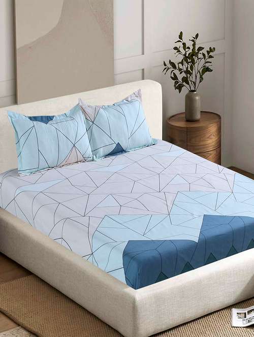- » geometory blue printed 1 double bedsheet with 2 pillow covers