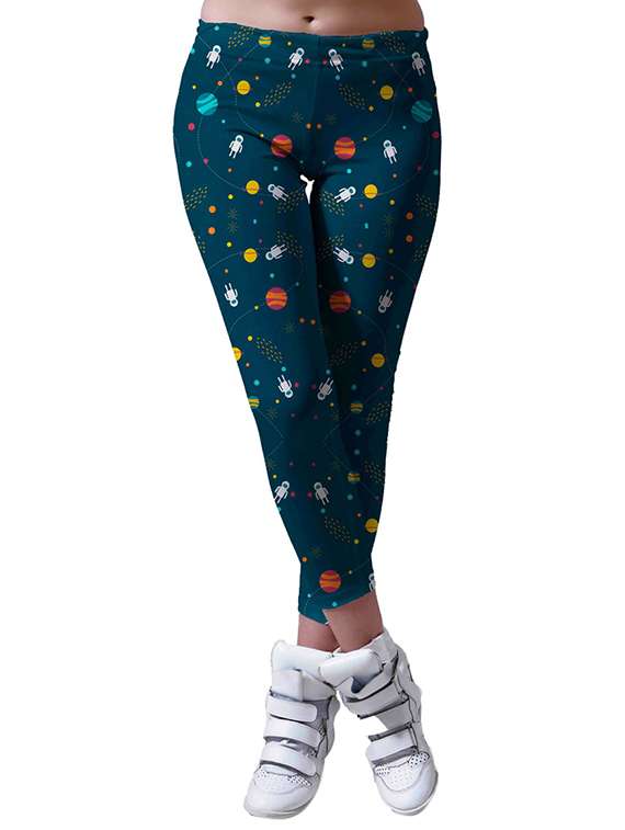 teal printed polyester leggings