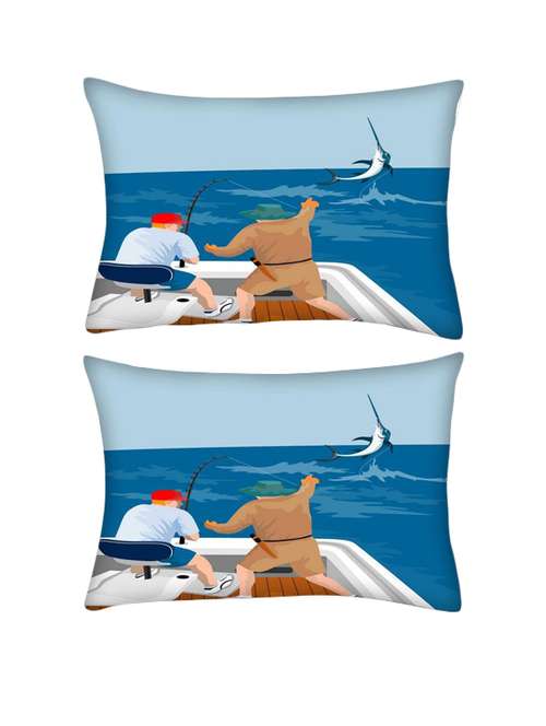 - » snoogg pack of two blue marlin fish jumping retro rectangle toss throw pillow cushion cover decoarative pillow case 14 x 07"