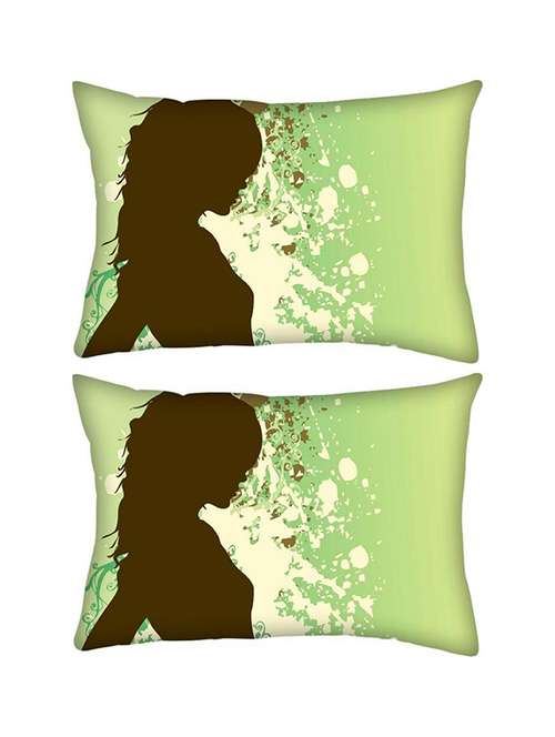 - » snoogg pack of two girl in green rectangle toss throw pillow cushion cover decoarative pillow case 14 x 07"