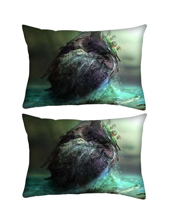 - » snoogg pack of two house in sea rectangle toss throw pillow cushion cover decoarative pillow case 14 x 07"