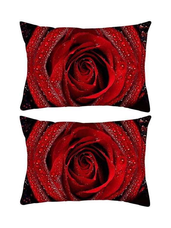 - » snoogg pack of two dew on red rose rectangle toss throw pillow cushion cover decoarative pillow case 14 x 07"