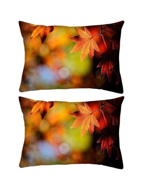 - » snoogg pack of two autumn leaves in trees rectangle toss throw pillow cushion cover decoarative pillow case 14 x 07"