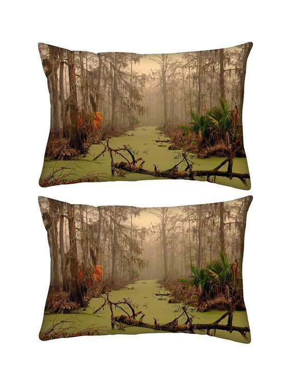 - » snoogg pack of two flood in forest rectangle toss throw pillow cushion cover decoarative pillow case 14 x 07"