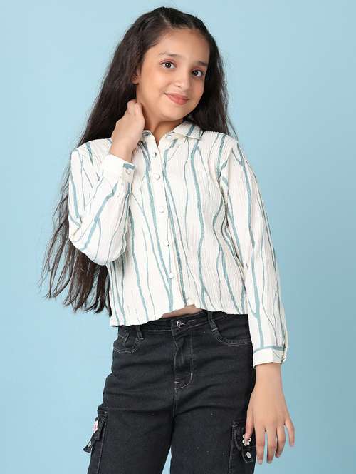 - » girls white printed long sleeve shirts top
