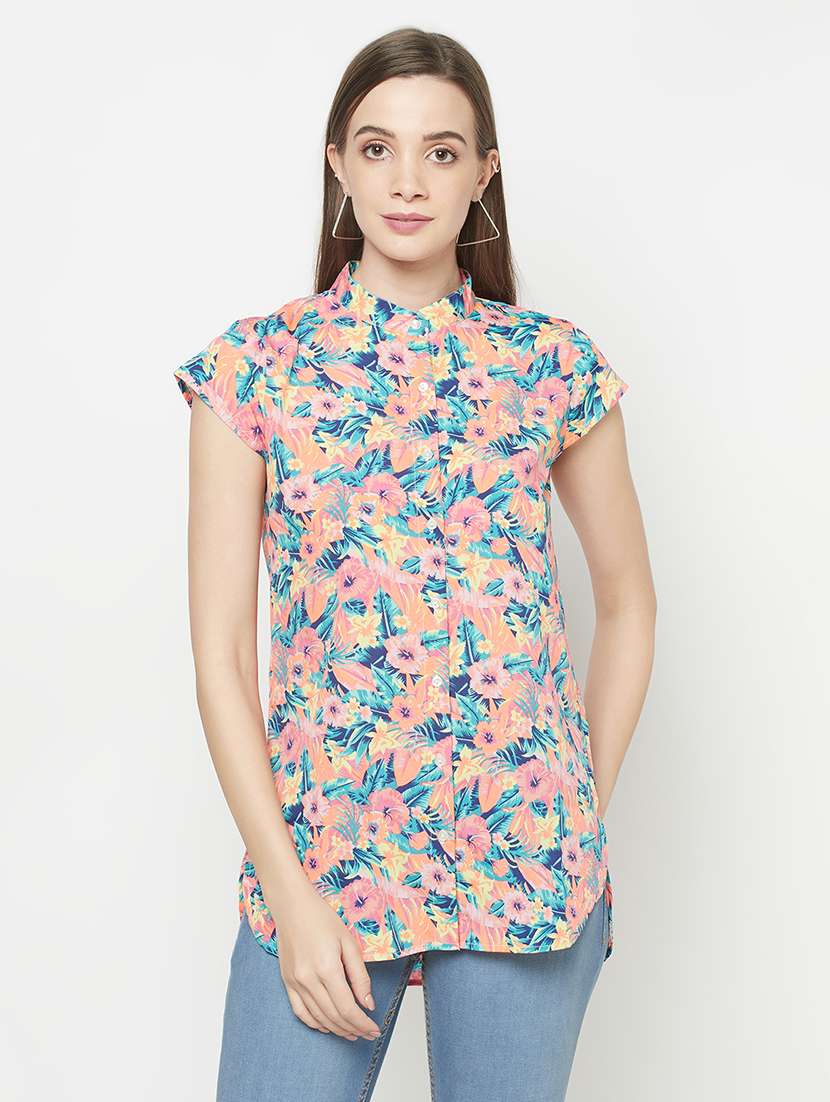women's straight mandarin neck top