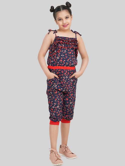 girls tie up neck floral full length jumpsuit