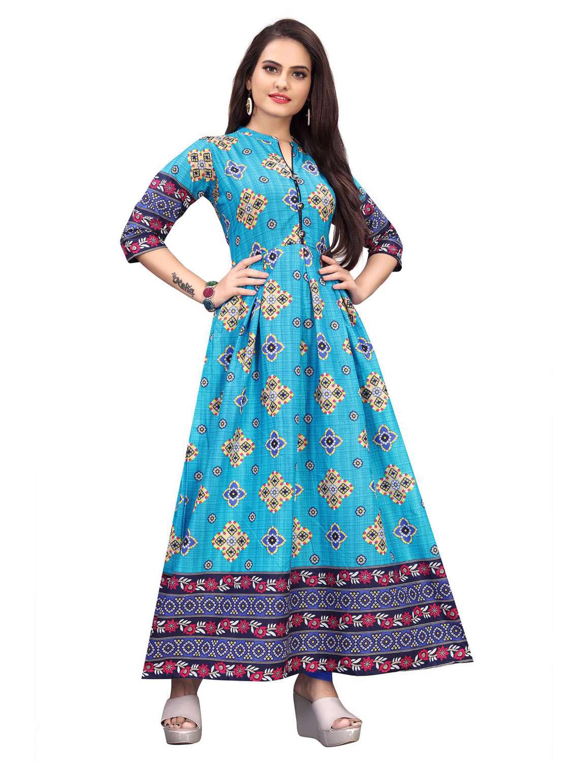 - Look simple, yet glamorous in these ethnic type gowns in three querter sleeves and that too in M on limeroad.