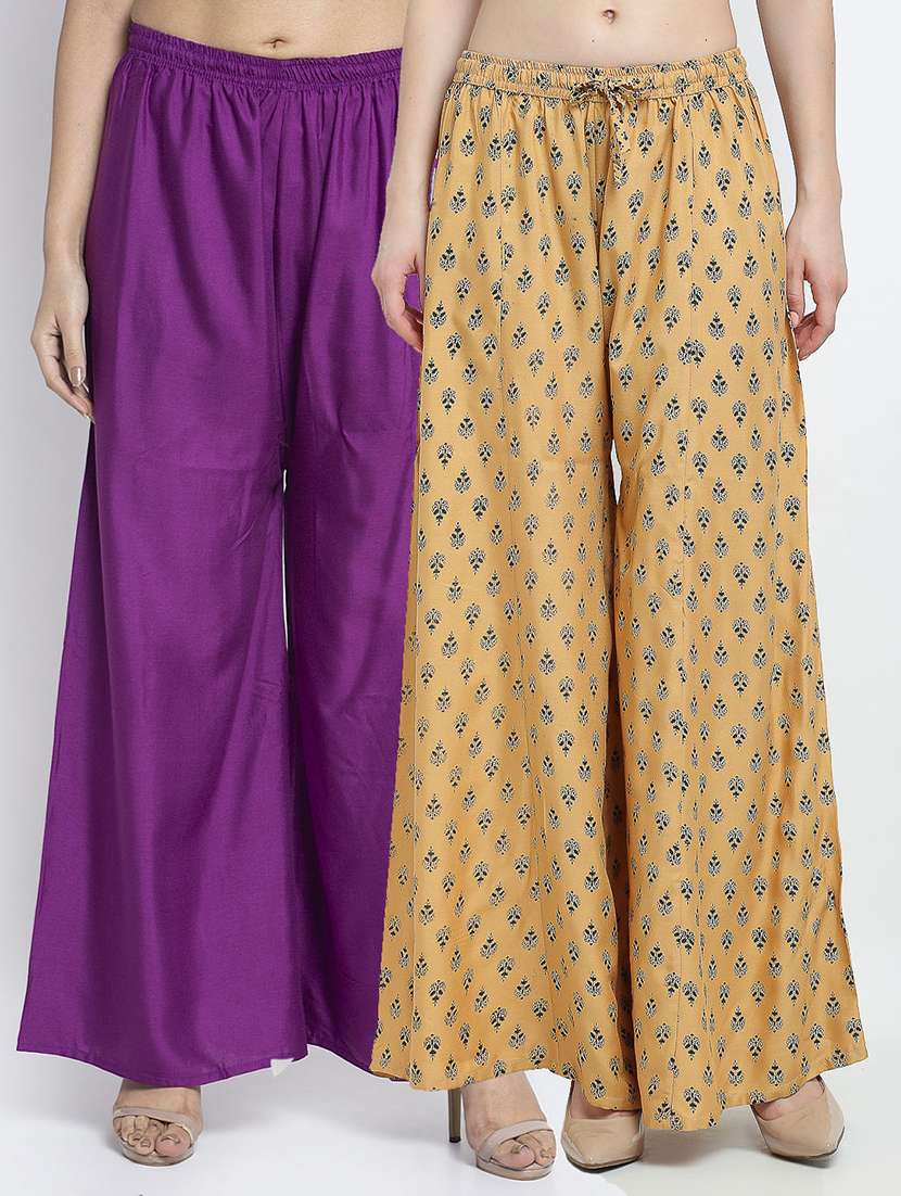 - Swirl your style and beauty in these combos palazzos available in a range of FREE SIZE sizes to make your ethnic wardrobe more elegant and convenient.