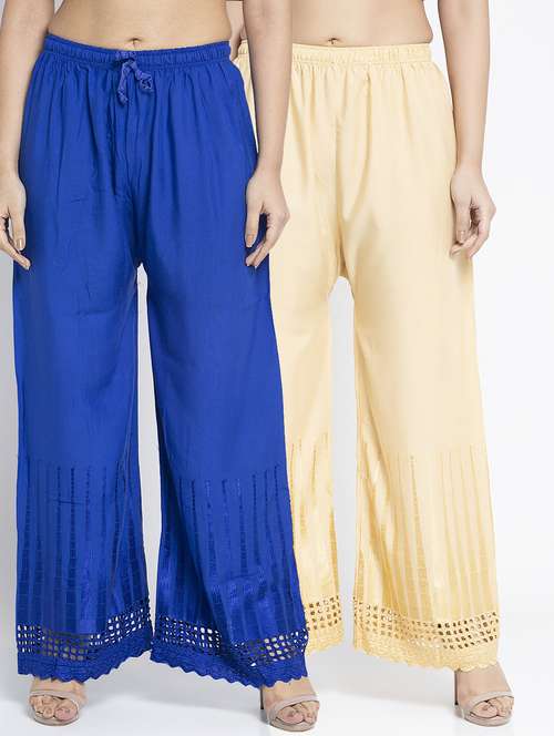 - Amplify your ethnic wardrobe with luxurious rayon palazzos which will add more grace and sophistication to your everyday looks.
