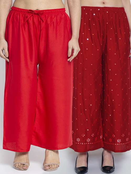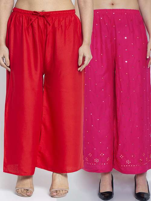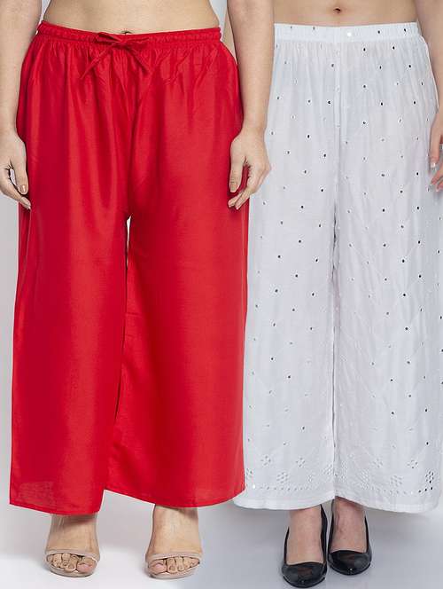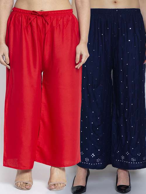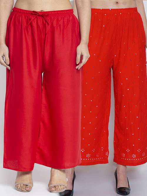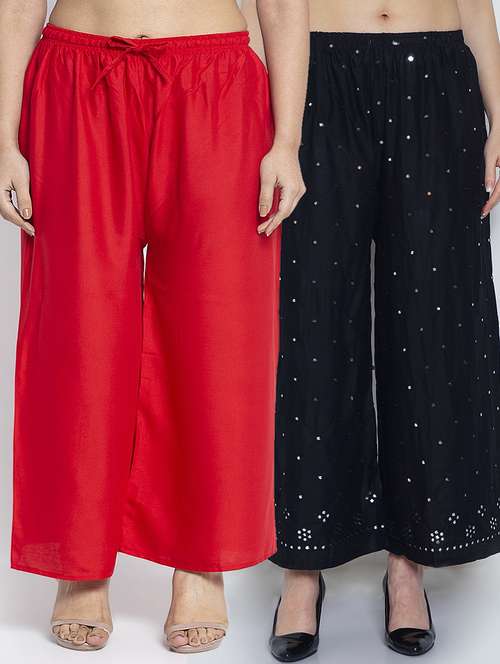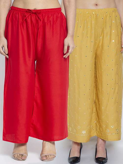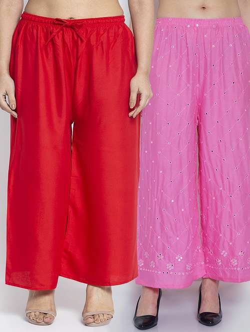 Women Rayon embroidery Print & Solid palazzo are a stylish piece of casual clothing. Featuring a mid-rise, soft, elasticated waistband - these palazzo promise a perfect and comfortable fit. Available in many shades, these pair well with indo-western tunics and Kurti.