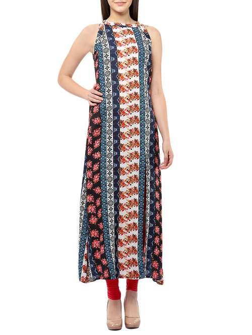 blue rayon printed high slit kurta