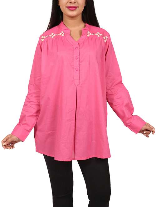 pink viscose straight kurti - 15344424 - Very Small Image - 1