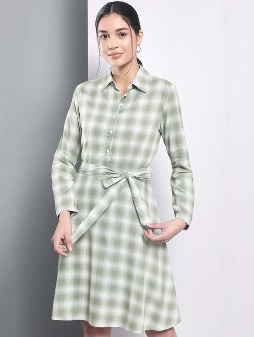 Green Checkered Flare Dress