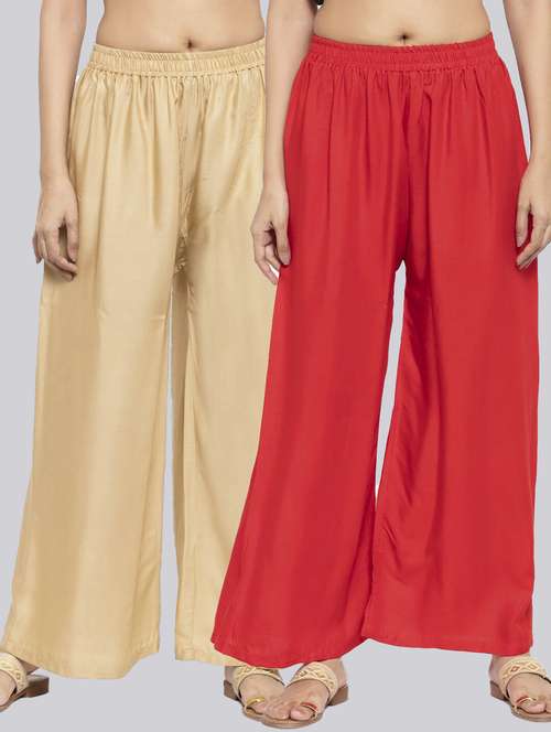 Pack of 2 Flared Women Beige and Red Viscose Rayon Palazzo