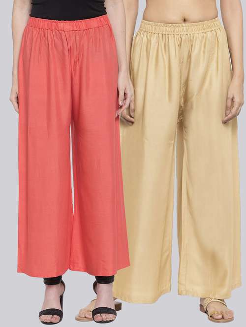 Pack of 2 Flared Women Peach and Beige Viscose Rayon Palazzo