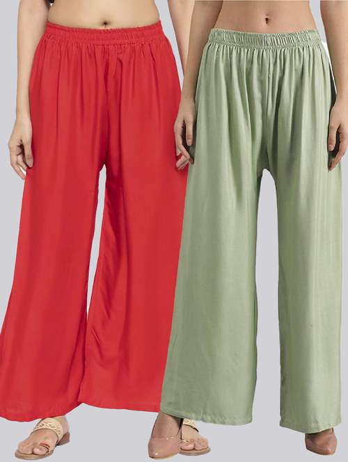 Pack of 2 Flared Women Red and Pista Green Viscose Rayon Palazzo