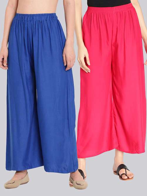 Pack of 2 Flared Women Royal Blue and Pink Viscose Rayon Palazzo