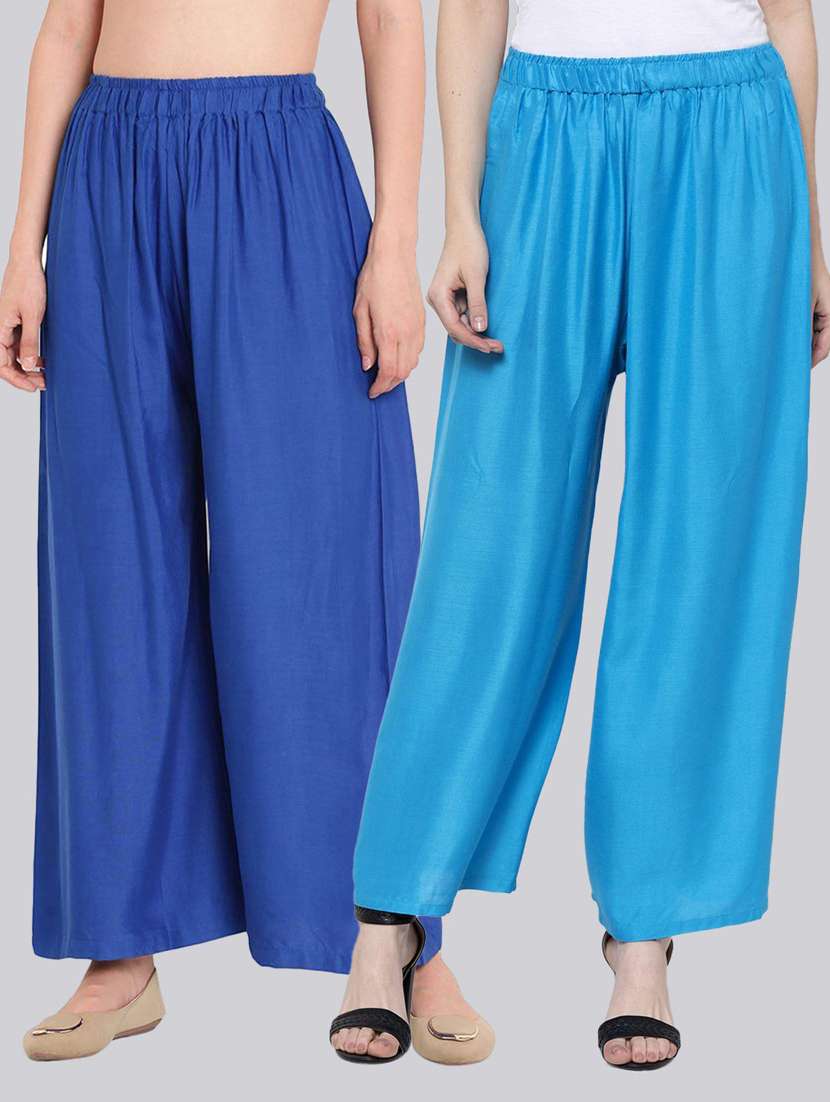 Pack of 2 Flared Women Royal Blue and Ferozi Viscose Rayon Palazzo