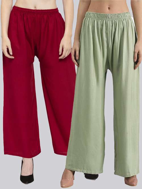 Pack of 2 Flared Women Maroon and Pista Green Viscose Rayon Palazzo