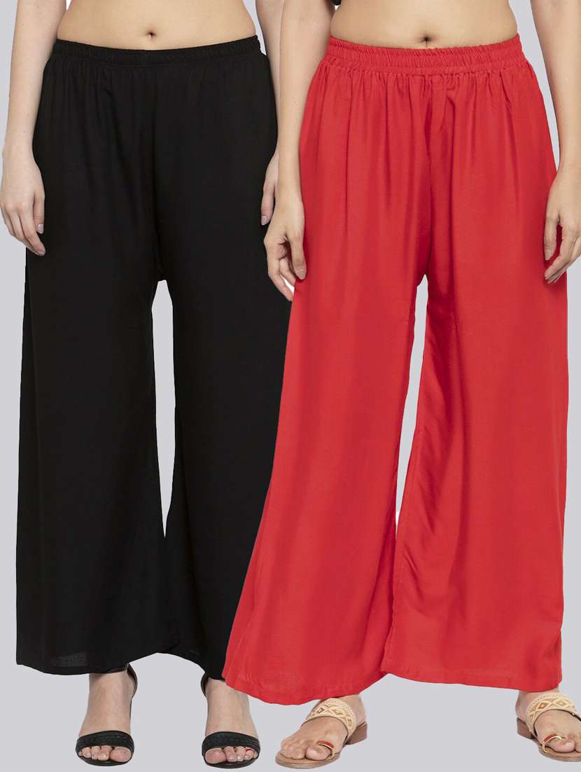 Pack of 2 Flared Women Red and Black Viscose Rayon Palazzo
