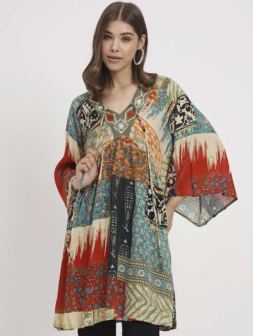 - » women printed neck detailed top