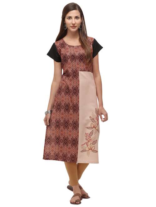 - Grab this beautiful kurta made up of rayon fabric featuring round neck designs.