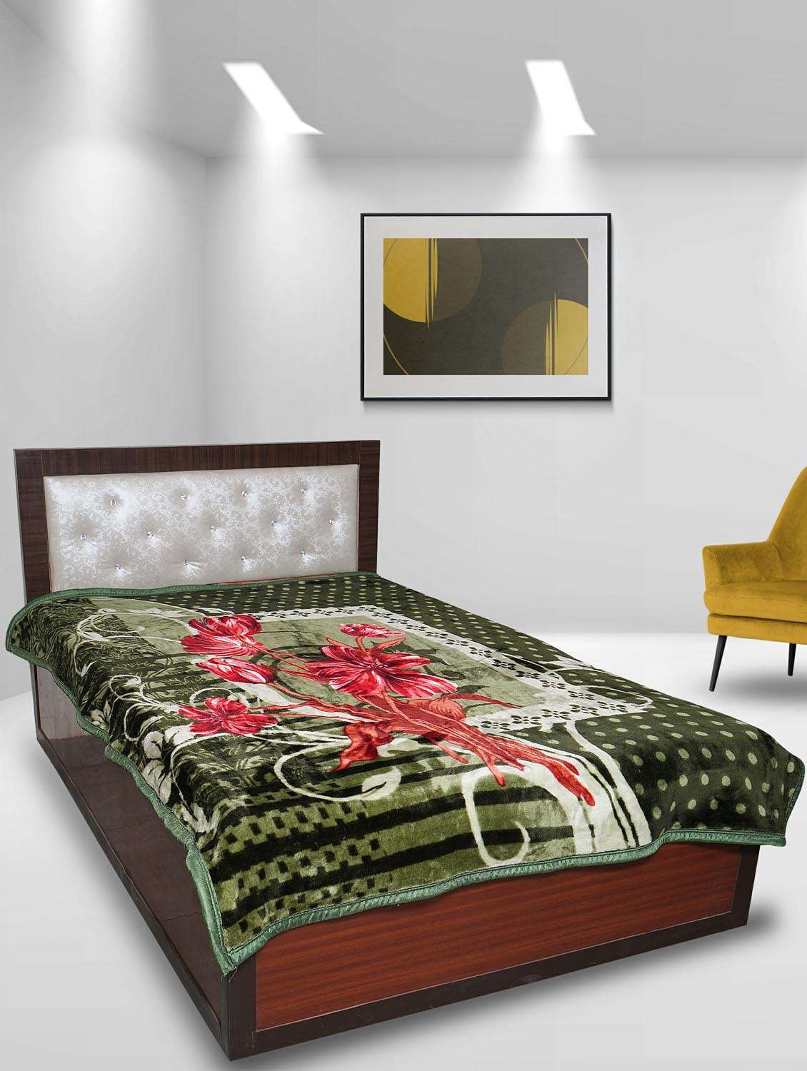 - » rian floral single bed mink blanket for heavy winter 4kg double ply (lilly_green)
