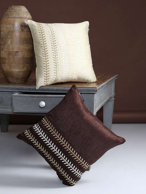 - » romee polyester embroidered cushion cover 16" x 16" set of 2 - gold & brown