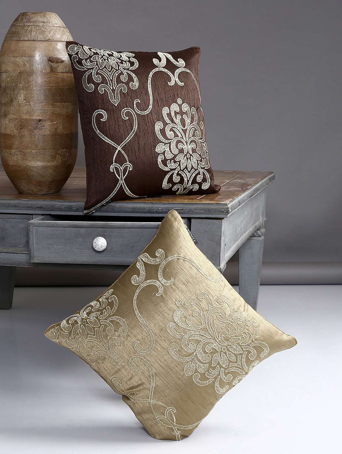romee polyester embroidered cushion cover 16" x 16" set of 2 - brown & beige