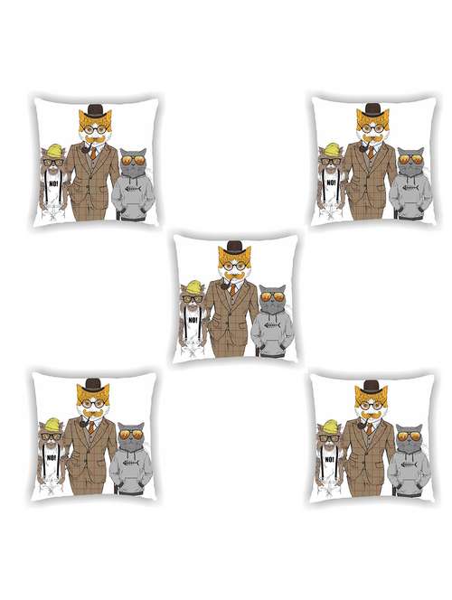 white satin printed cushion cover (set of 5)