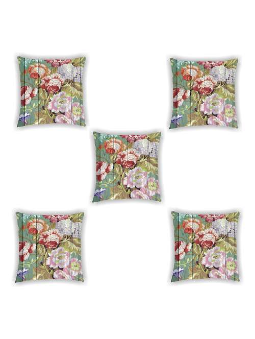 multi coloured satin floral print cushion cover (set of 5)