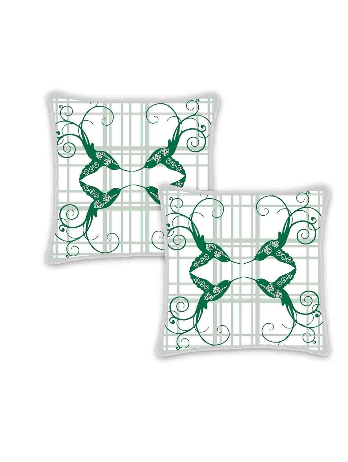 Ambbi Collection Digitally Printed Cushion Cover checks background & birds over it set of 2