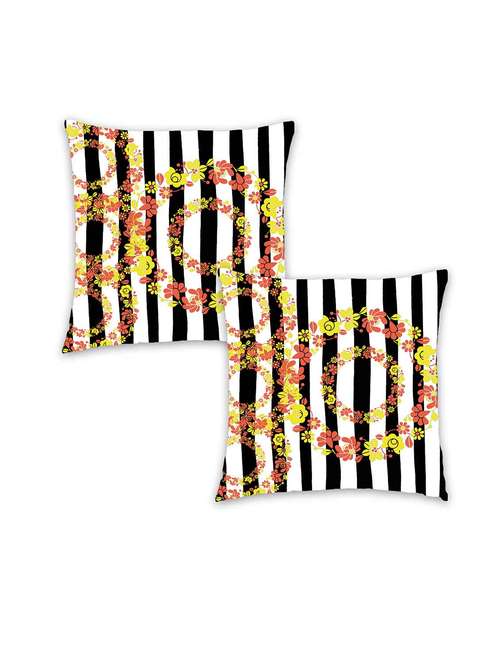 Ambbi Collection Digitally Printed Cushion Cover stripes background & circle with the flowers set of 2